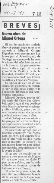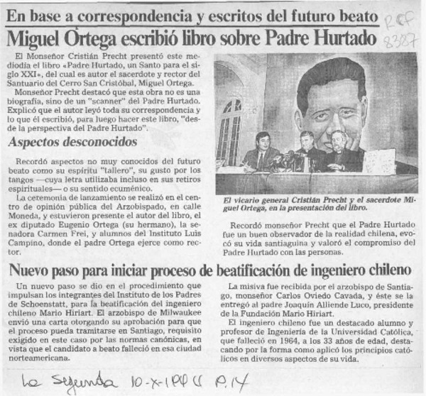 Miguel Ortega escribió libro sobre Padre Hurtado [artículo].