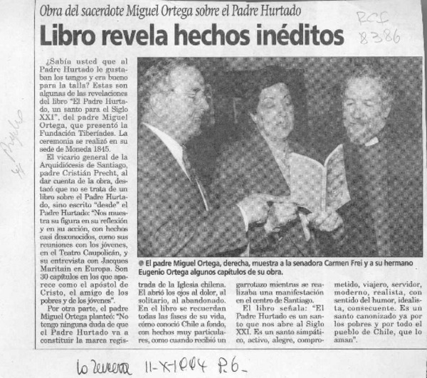 Libro relata inéditos aspectos del padre Alberto Hurtado [artículo].