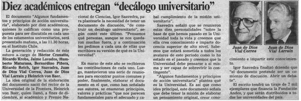 Diez académicos entregan "decálogo universitario" [artículo].
