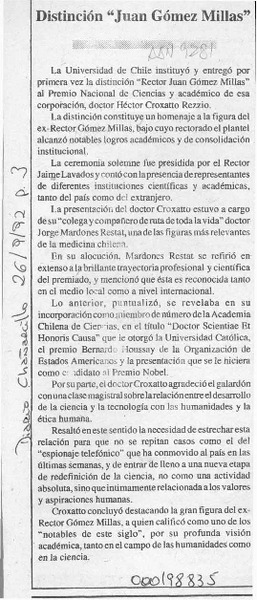 Distinción "Juan Gómez Millas" [artículo].