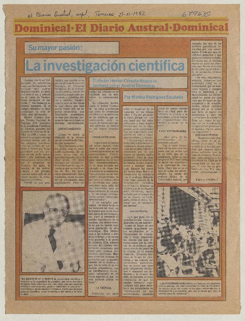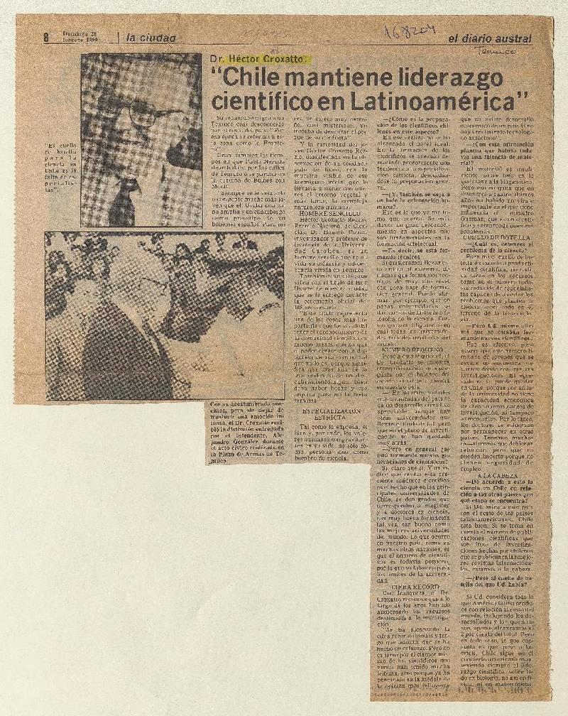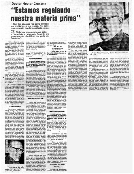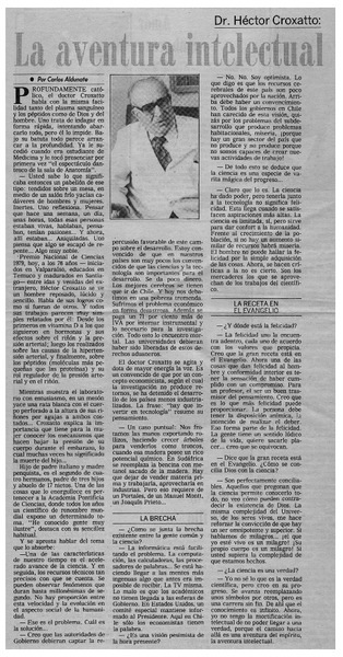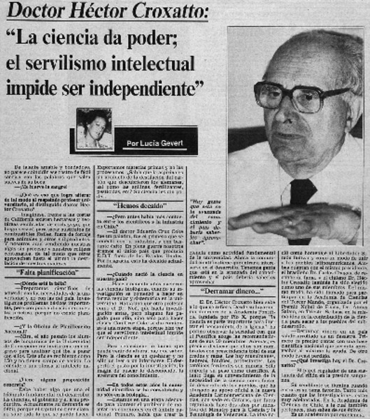 Doctor Héctor Croxatto; "La ciencia da poder; el servilismo intelectual impide ser independiente" : [entrevista] : [artículo] Lucía Gevert.