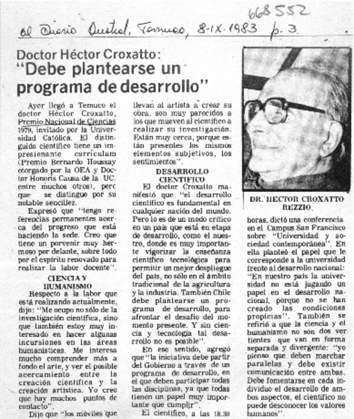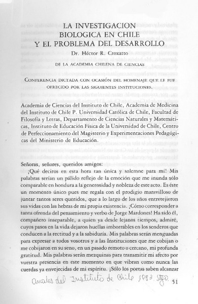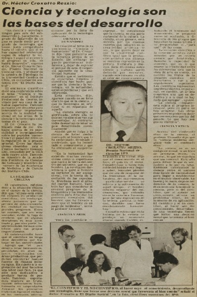 Autores chilenos - Croxatto, Héctor - Rol de la ciencia en el desarrollo