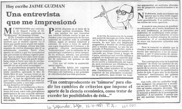 Una entrevista que me impresionó [artículo] Jaime Guzmán.