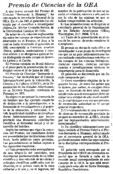 Premio de ciencias de la OEA. [artículo]