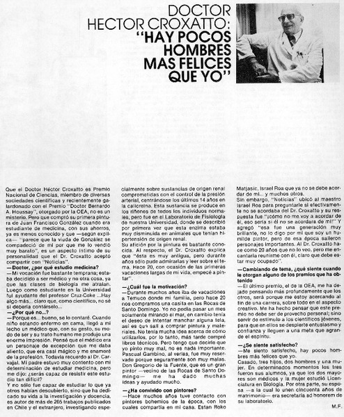 Doctor Héctor Croxatto: "hay pocos hombres mas felices que yo" : [Entrevista] [artículo] M.F.