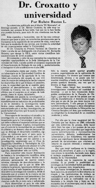 Dr. Croxatto y universidad [artículo] Rubén Bustos L.