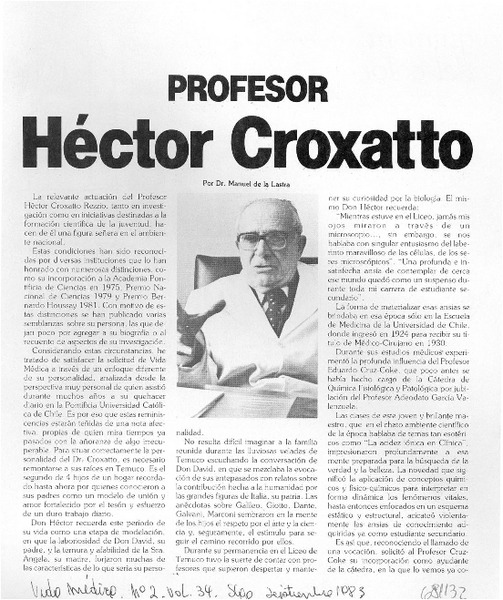 Profesor Héctor Croxatto [artículo] Manuel de la Lastra.
