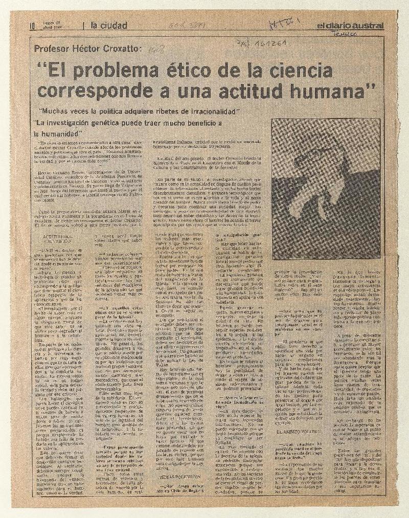 "El problema ético de la ciencia corresponde a una actitud humana" [artículo]
