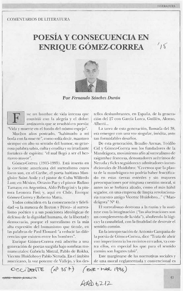 Poesía y consecuencia de Enrique Gómez-Correa [artículo] Fernando Sánchez Durán.