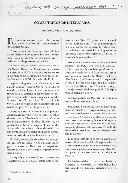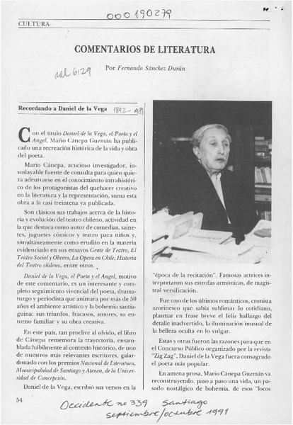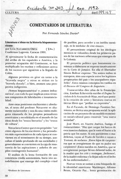 Comentarios de literatura [artículo] Fernando Sánchez Durán.