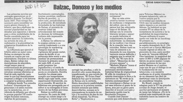 Balzac, Donoso y los medios [artículo] Oscar Garaycochea.