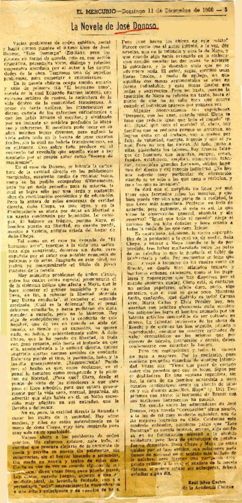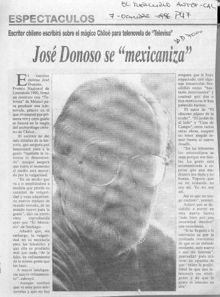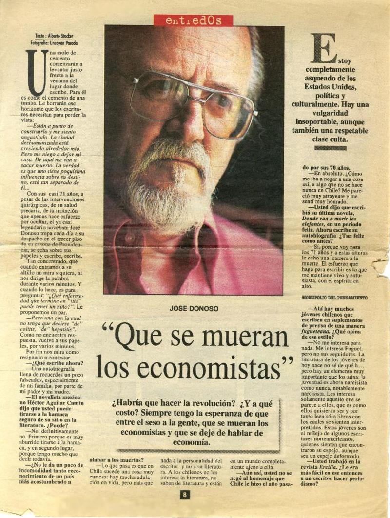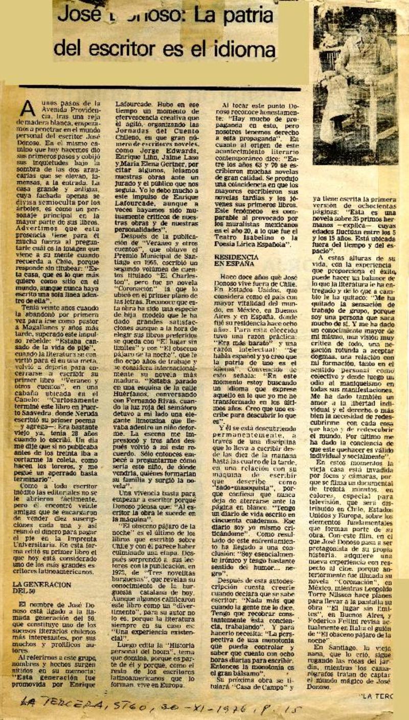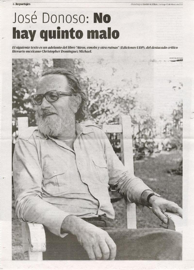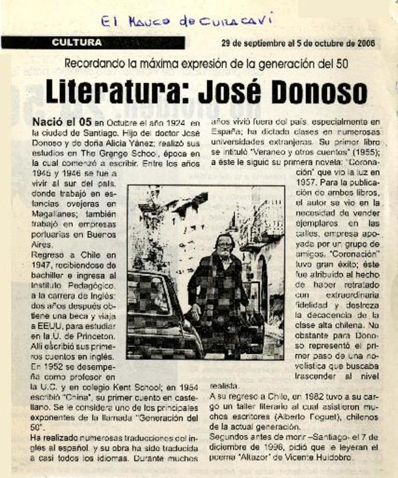 Chile perdió uno de sus grandes escritores, ayer dejó de existir José Donoso Yáñez [artículo].