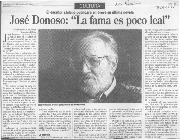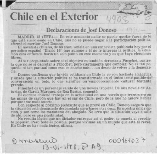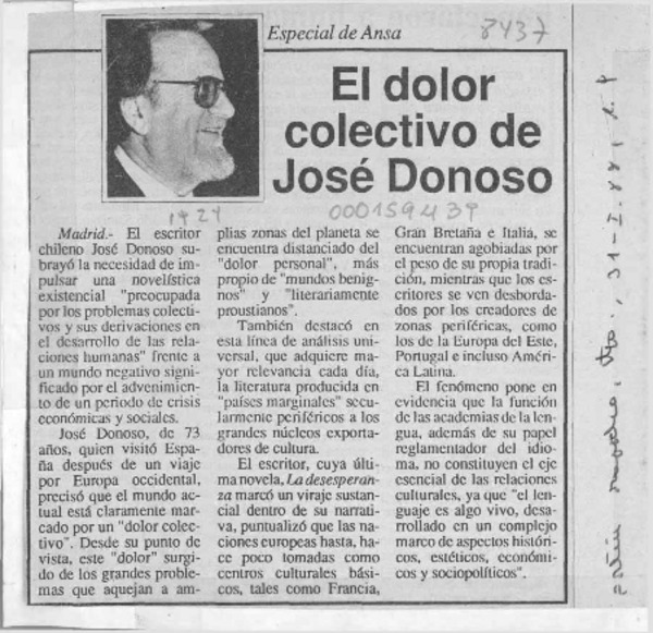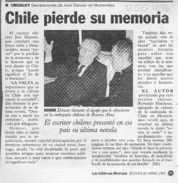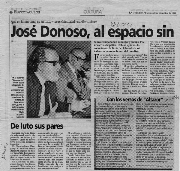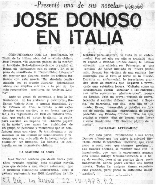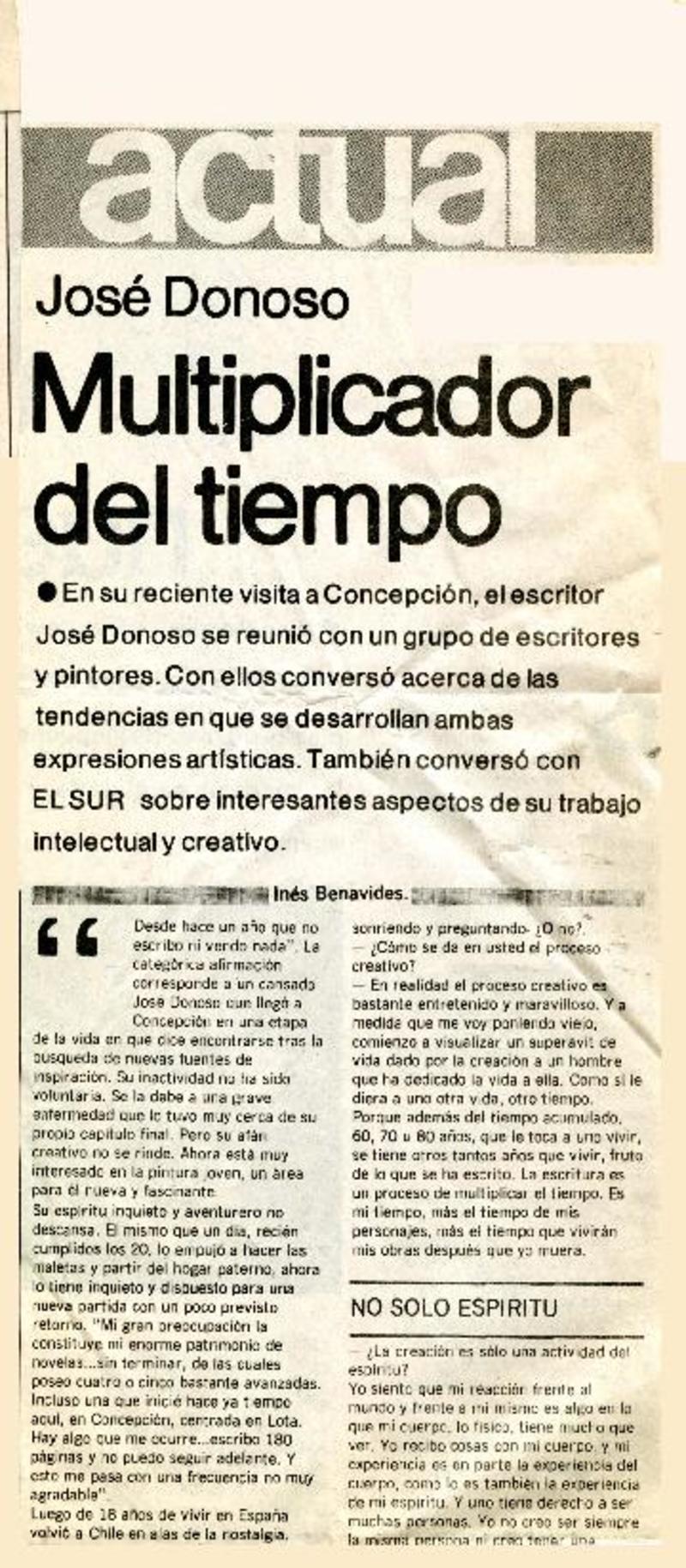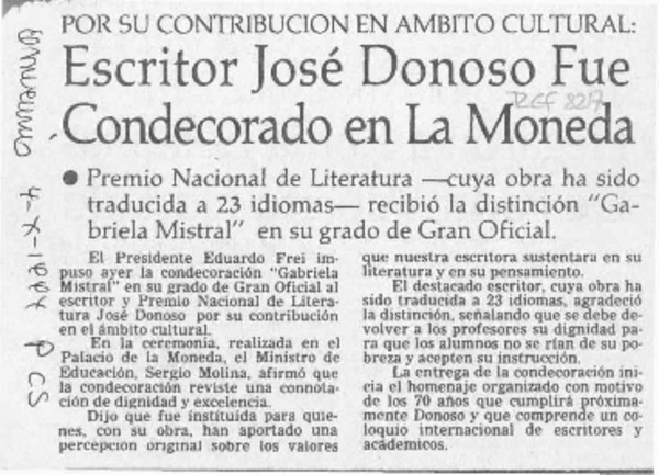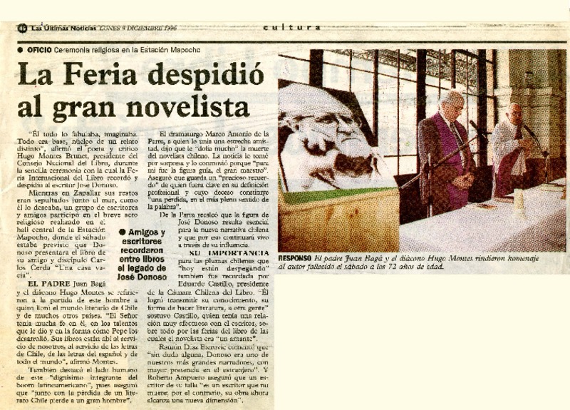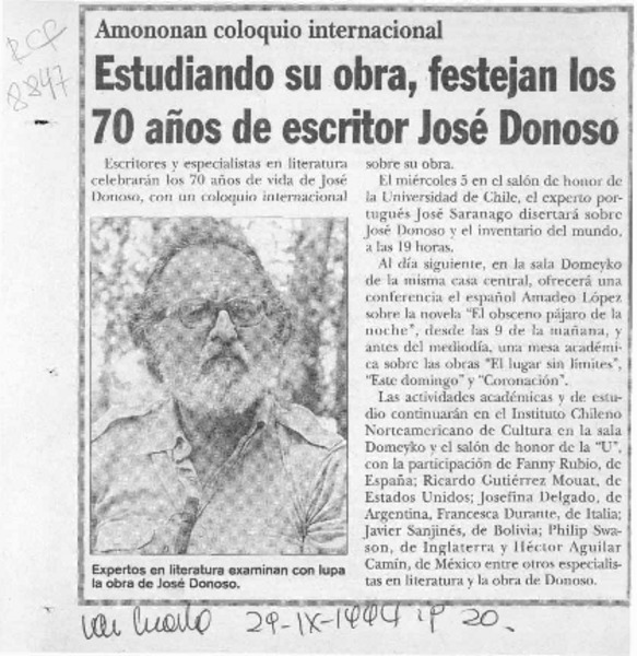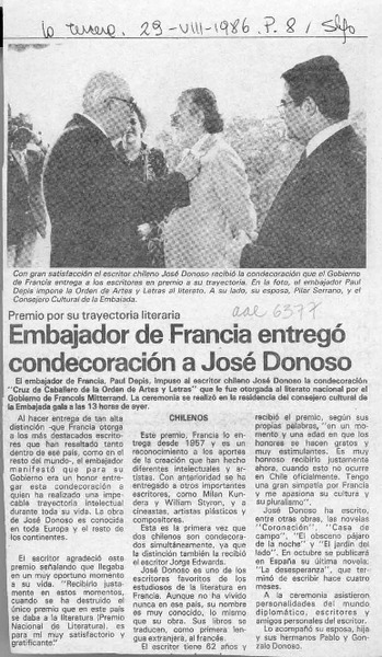 Chile perdió uno de sus grandes escritores, ayer dejó de existir José Donoso Yáñez [artículo].