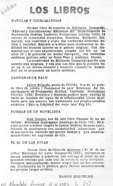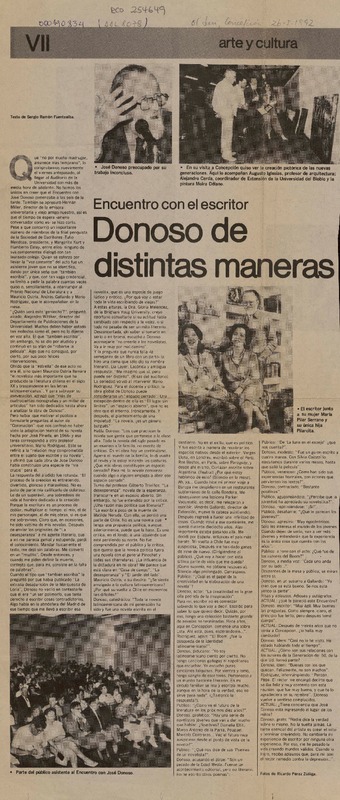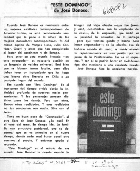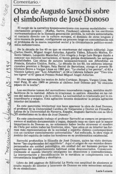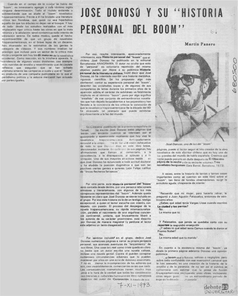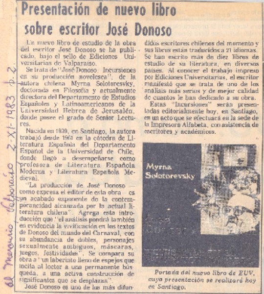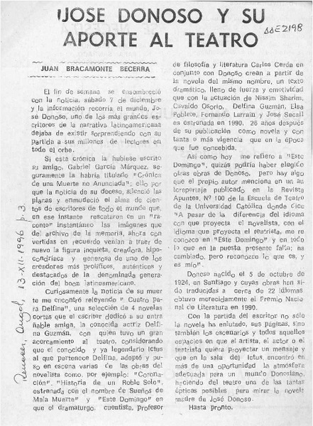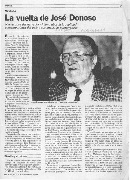 Un libro sobre José Donoso [artículo] Hugo Montes.