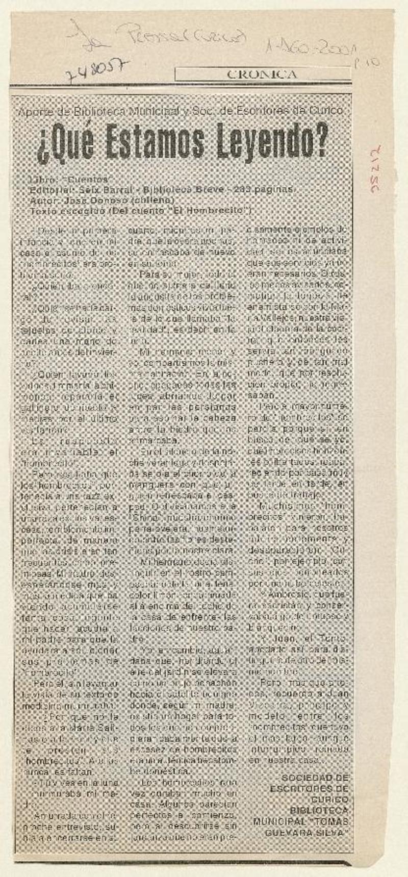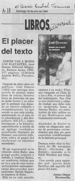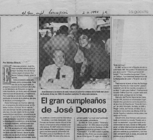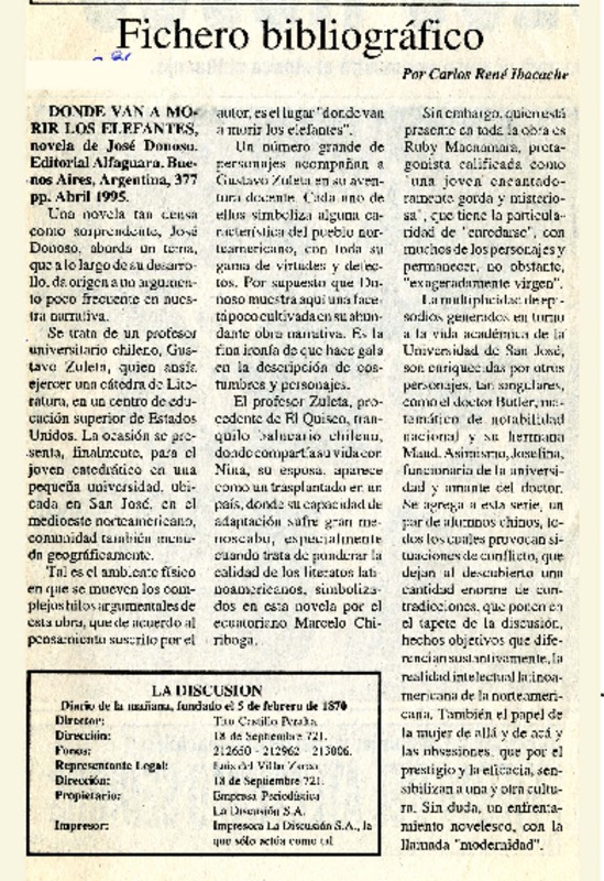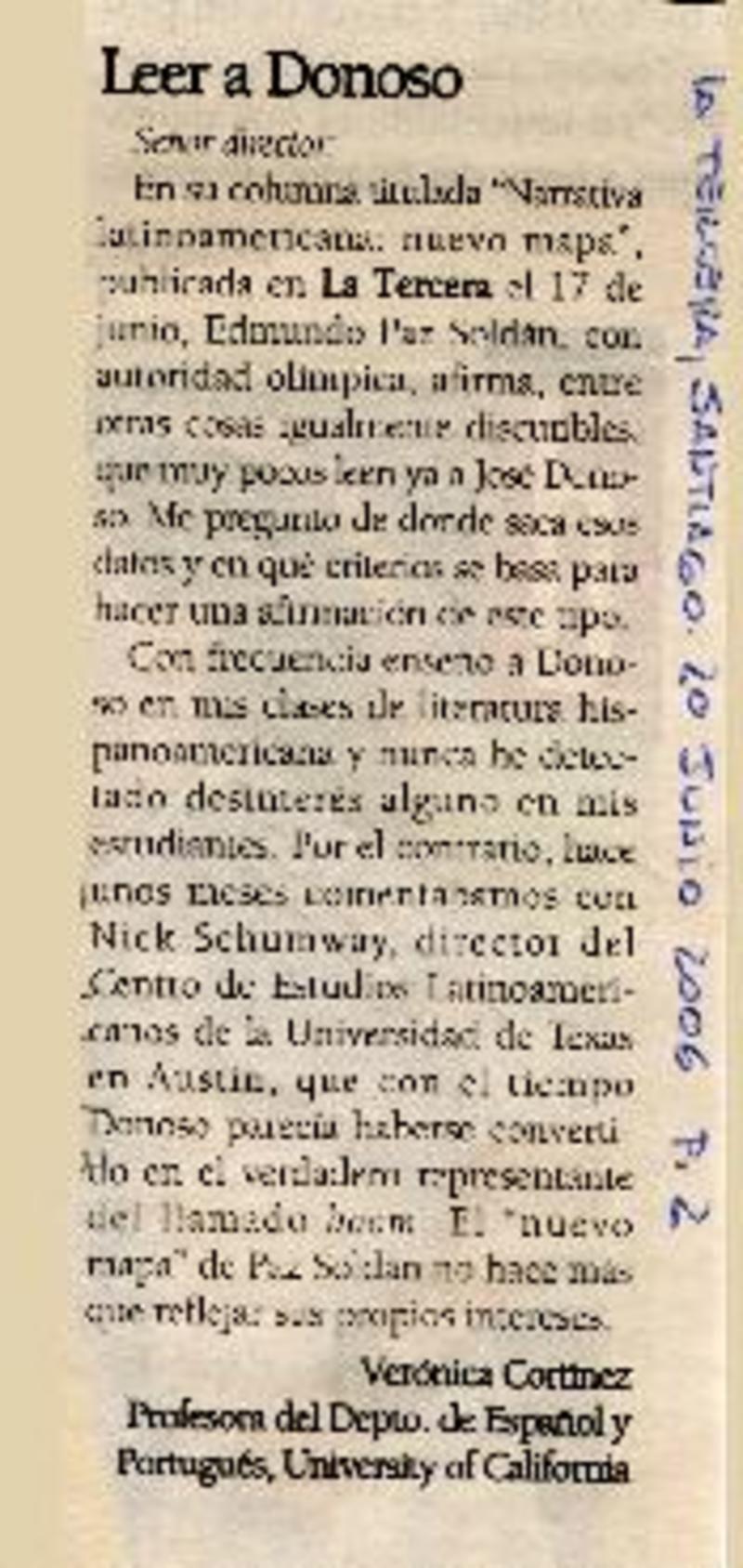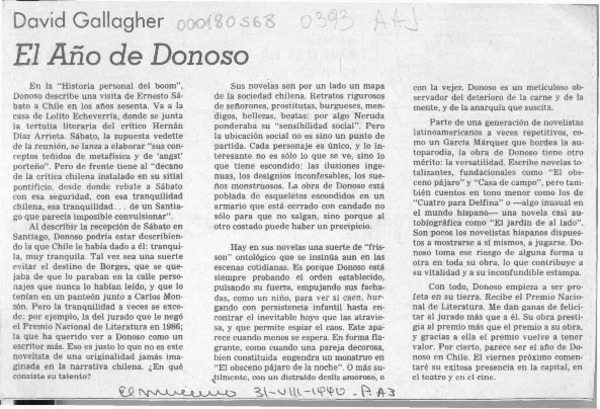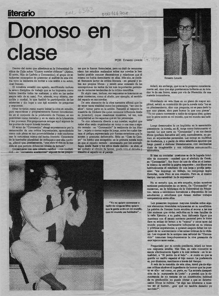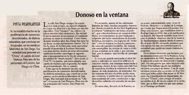 Todos los días no se muere un Donoso [artículo] Orlando Walter Muñoz.