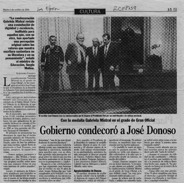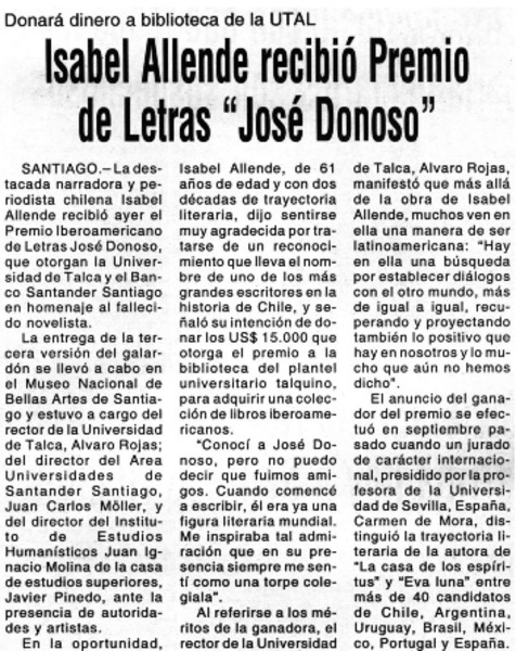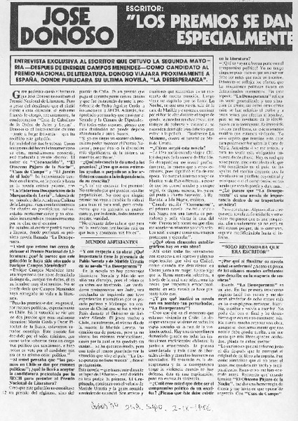 Afirma José Donoso "Premio de Literatura fue creado por los escritores" [artículo].