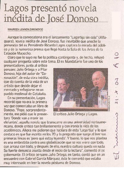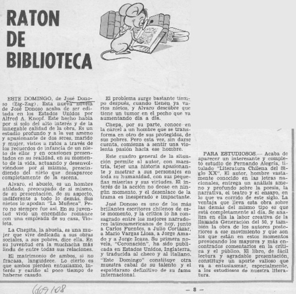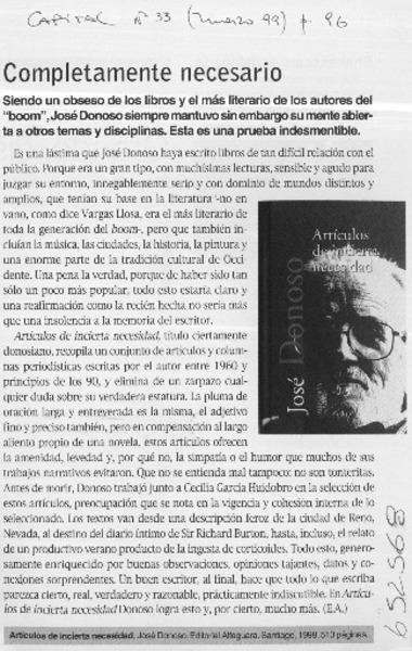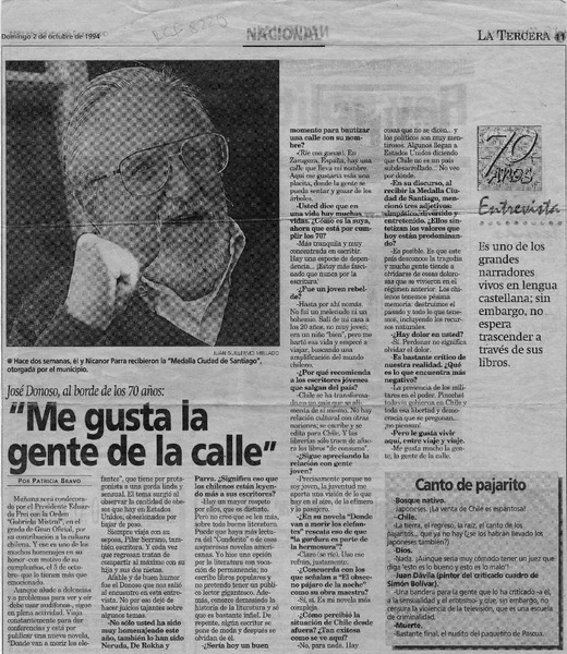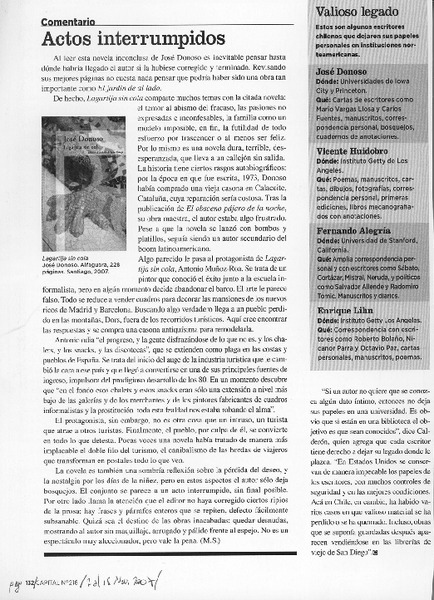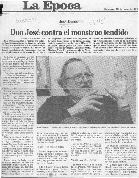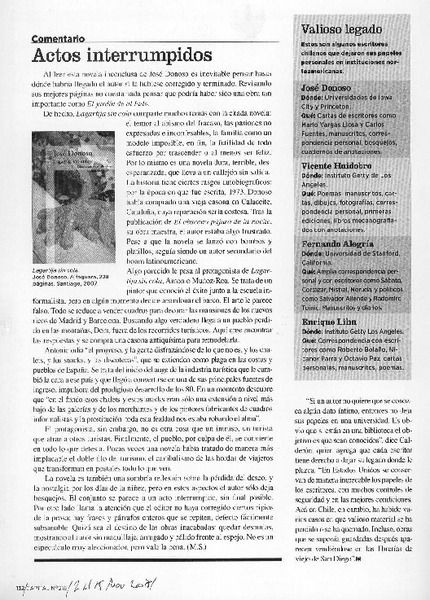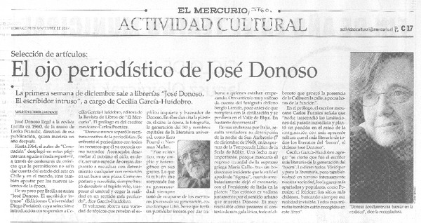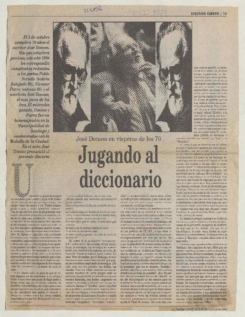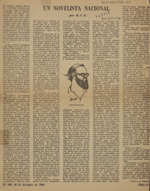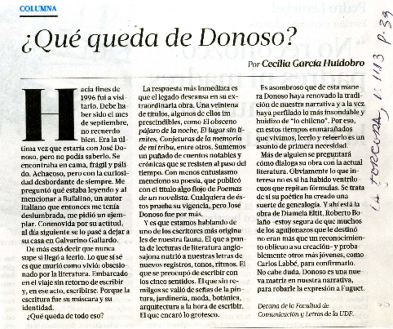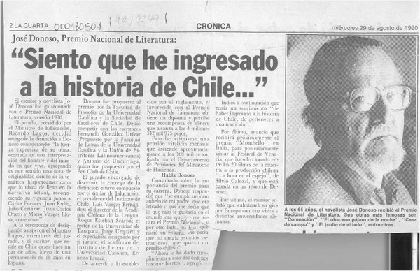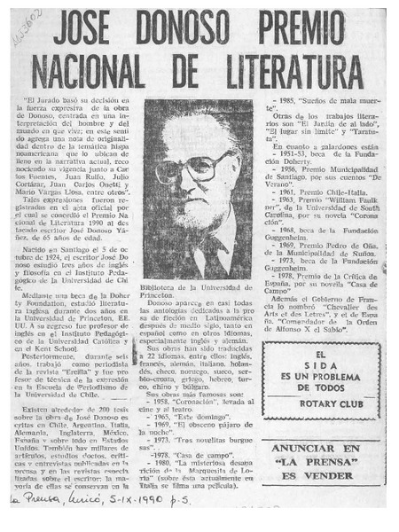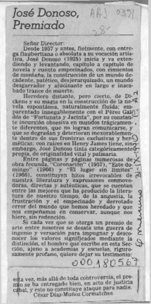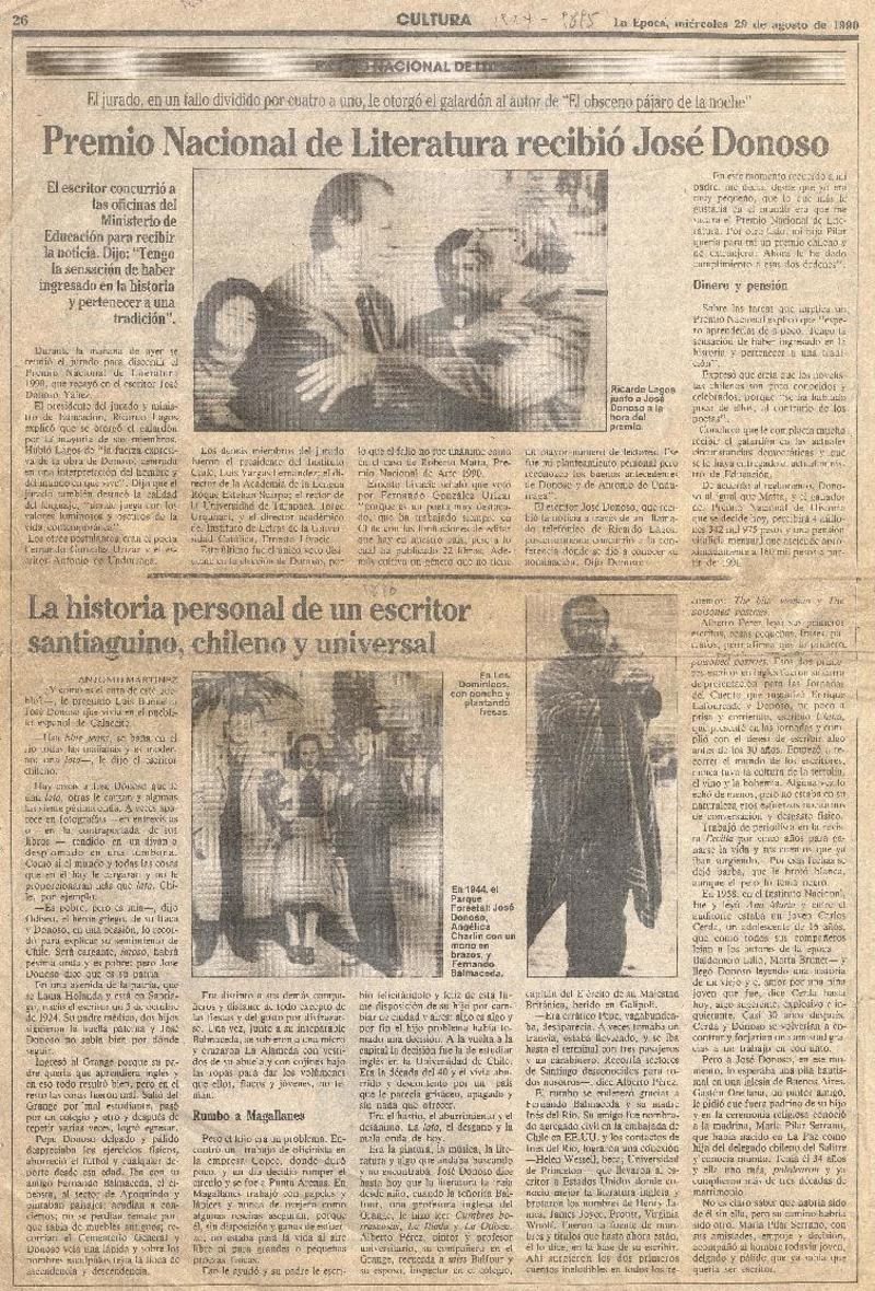 Un Premio Nacional de Literatura respetable, merecido y muy Donoso [artículo] Oscar Vega.