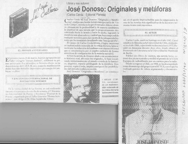 Se presenta "José Donoso, originales y metáforas" [artículo].