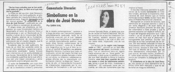 Simbolismo en la obra de José Donoso [artículo] Sara Vial.