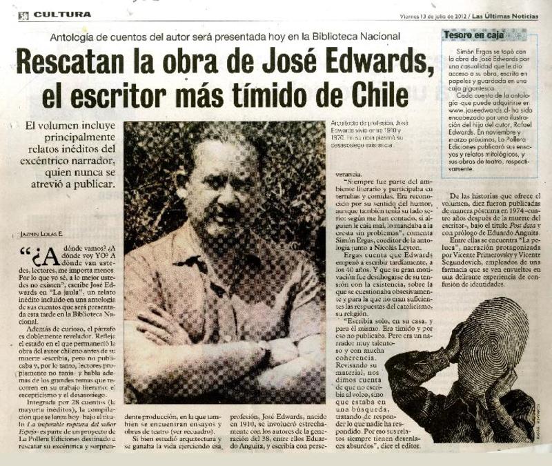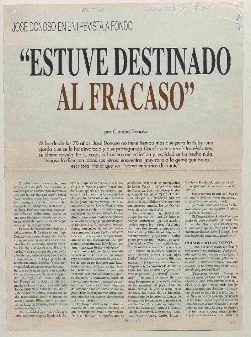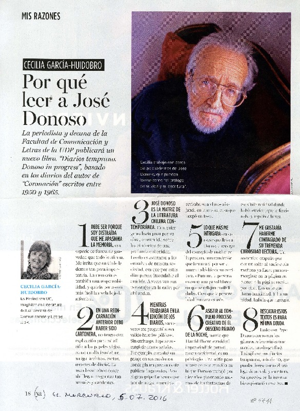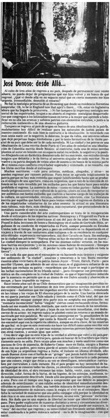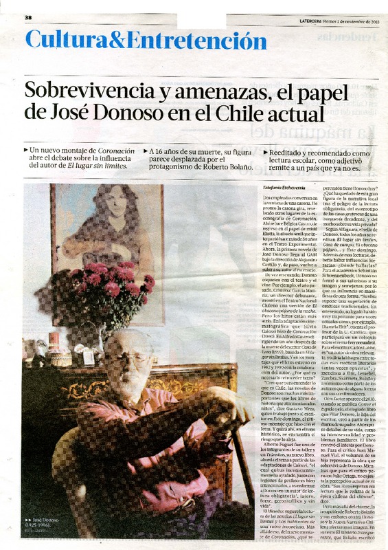 Sobrevivencia y amenazas, el papel de José Donoso en el Chile actual [artículo] Estefanía Etcheverria