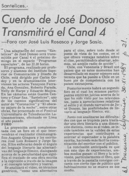 Cargada a las brujerías será la telecebolla de José Donoso. [artículo]