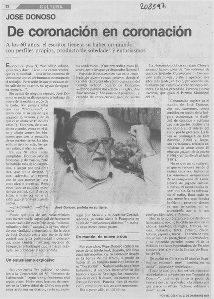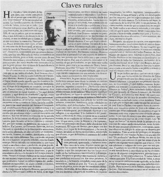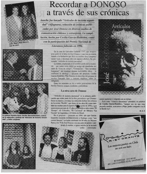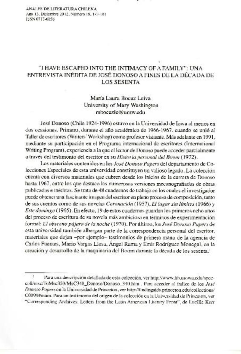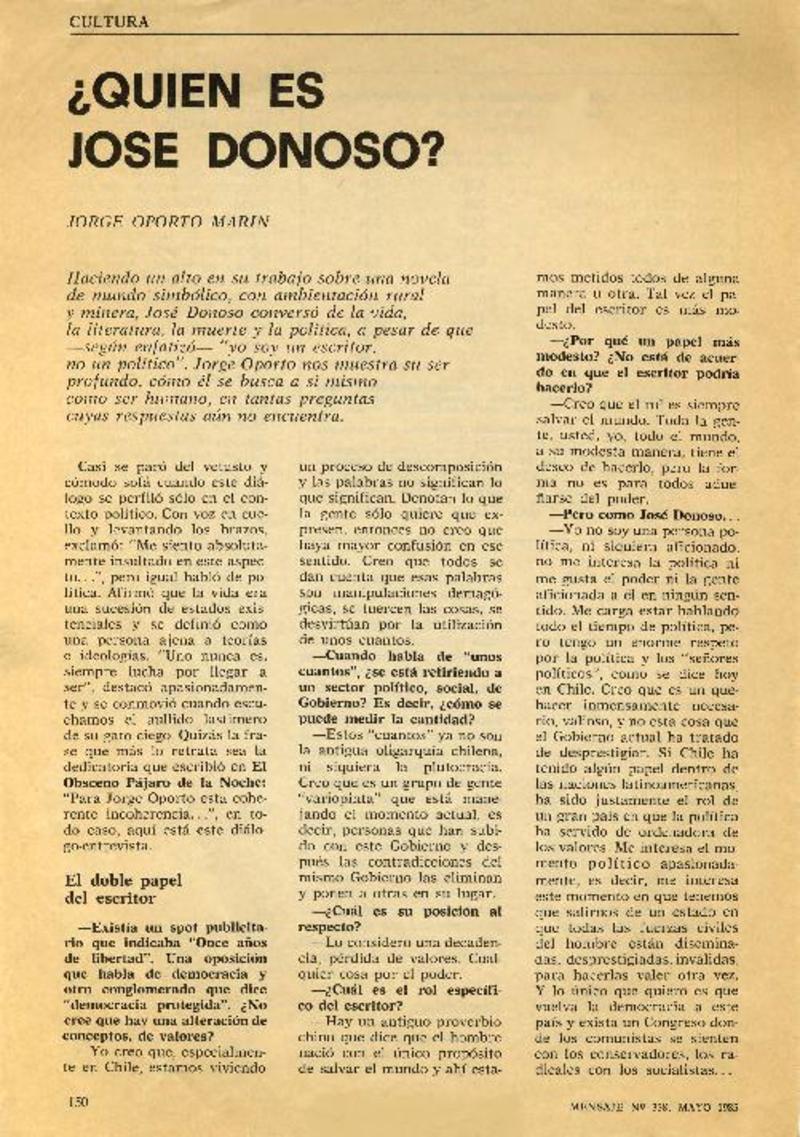 Aproximaciones a la obra de José Donoso [artículo] Hugo Rolando Cortés.
