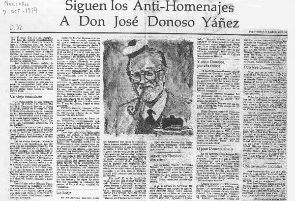 Siguen los anti-homenajes a don José Donoso Yáñez [artículo] Enrique Lafourcade.