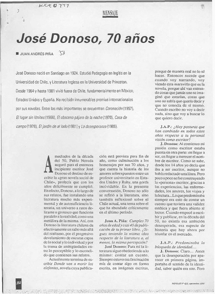 Autorretrato de Donoso [artículo] Antonio Landauro.