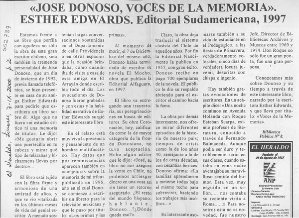 Donoso, José - EDWARDS, ESTHER - JOSE DONOSO, VOCES DE LA MEMORIA