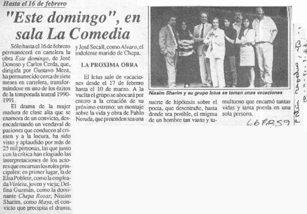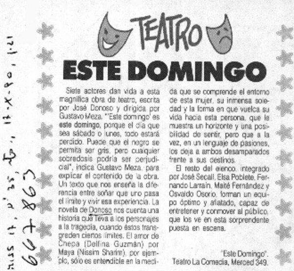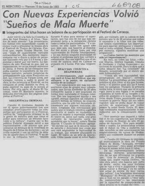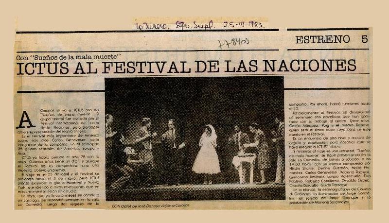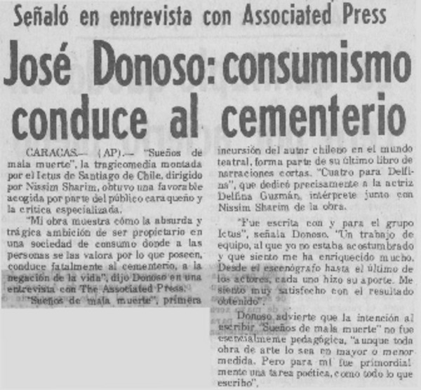 Sueños de mala muerte", estreno mundial de José Donoso en "La Comedia" [artículo] Carlos Iturra.