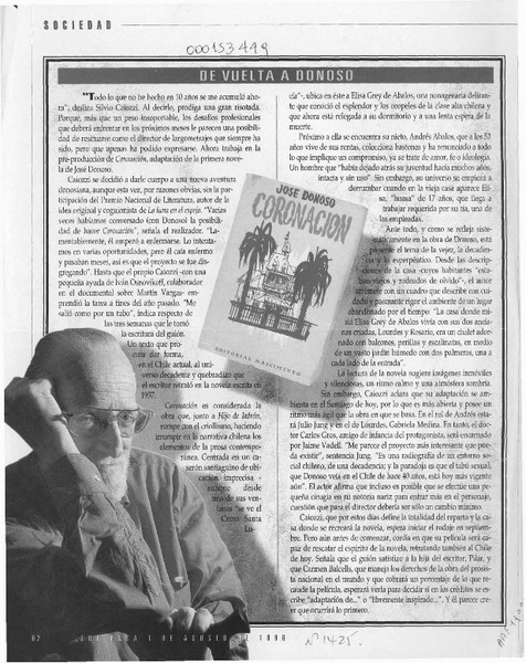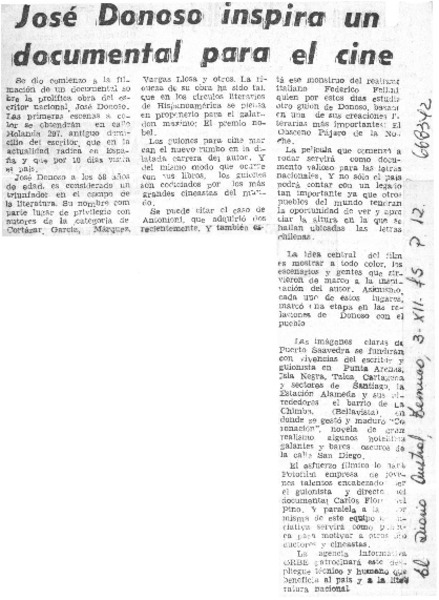 Una película sobre José Donoso [artículo] Carmen Chapero