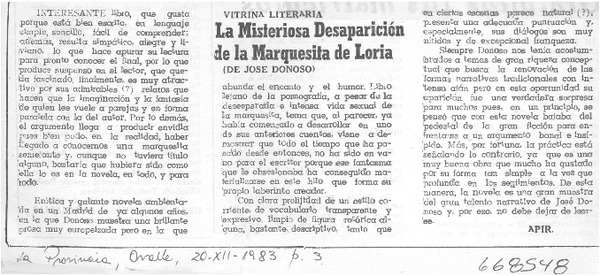 Autores chilenos - Donoso, José - Misteriosa desaparición de la marquesita de Loria
