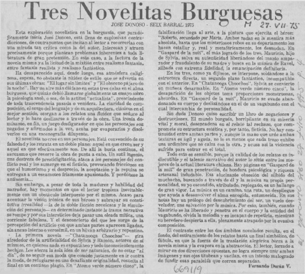 Tres novelitas burguesas [artículo] Fernando Durán V.