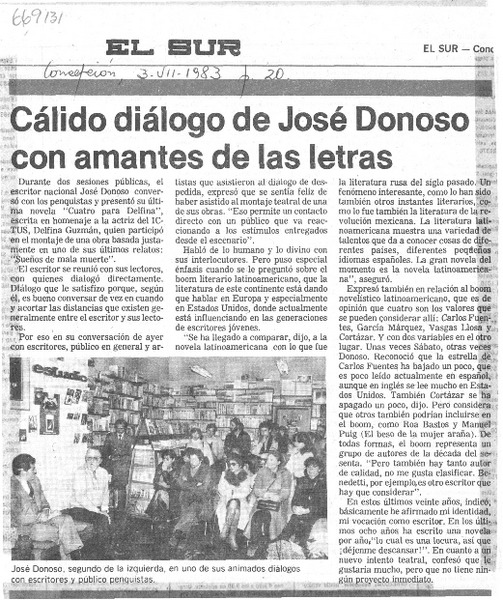 Cálido diálogo de José Donoso con amantes de la letras. [artículo]