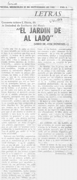 Bibliografía crítica anotada de El Jardín de al lado de José Donoso [artículo] Pablo Berchenko.