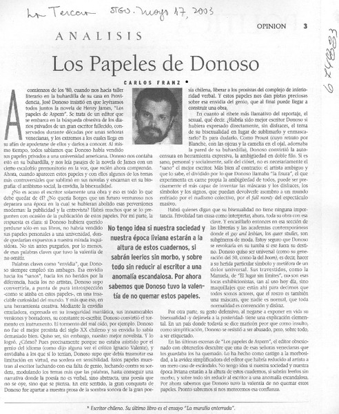 ¿Artista o profesional? el caso de José Donoso [artículo] Carlos Franz.