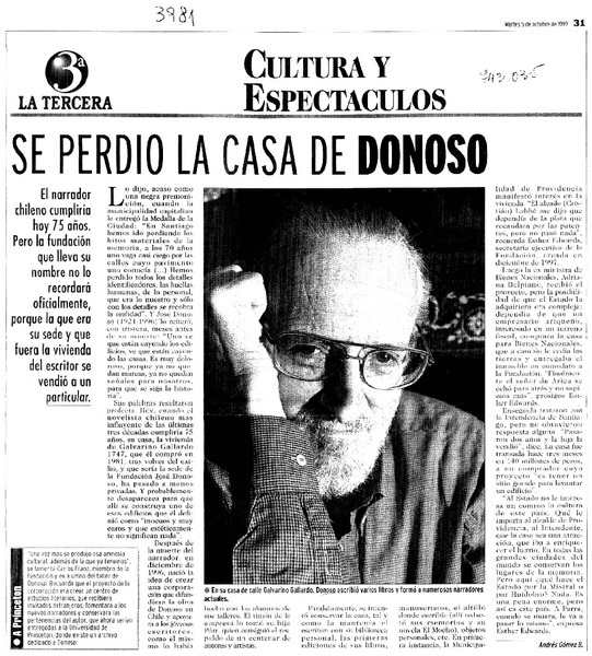 Se perdió la casa de Donoso [artículo] Andrés Gómez B.