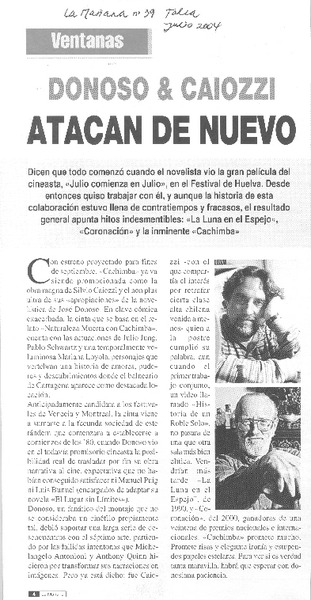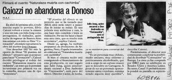 Caiozzi no abandona a Donoso [artículo] M. A. F.