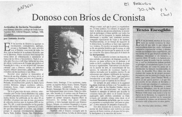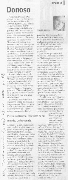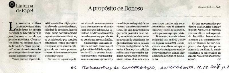 A próposito de Donoso [artículo] Benjamín Guzmán T.