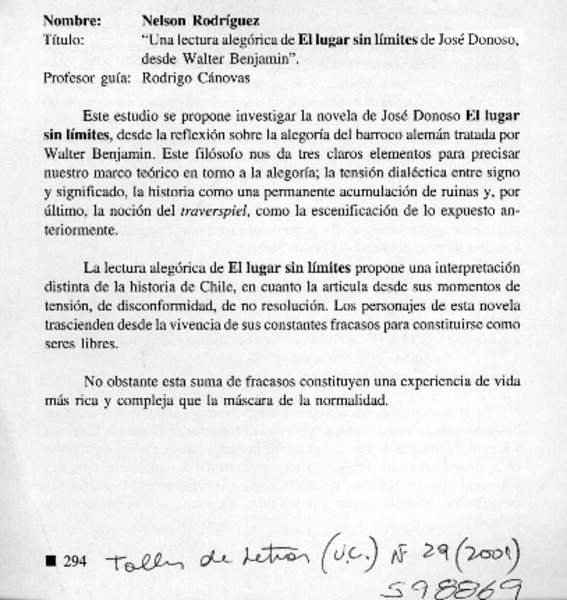 Autores chilenos - Donoso, José - Lugar sin Límites
