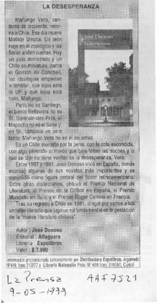 Alfaguara lanzará en Argentina última novela de José Donoso [artículo].