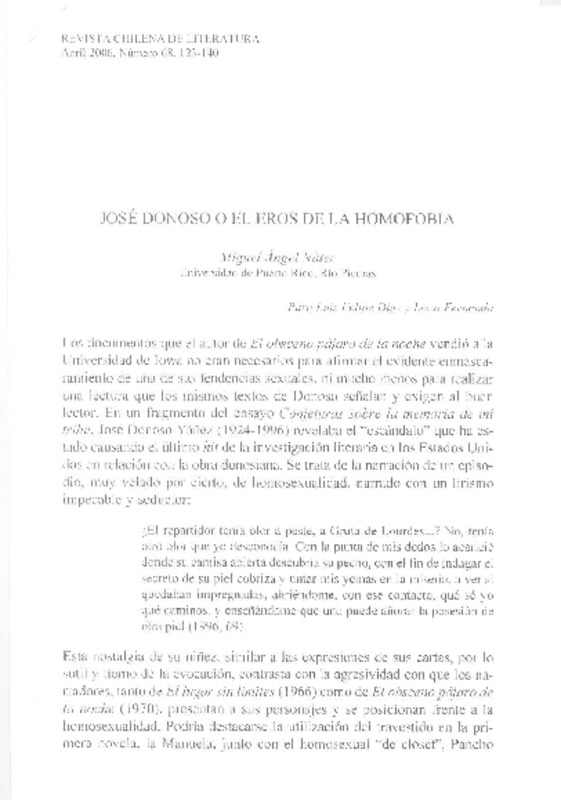 Búsqueda del padre, lugar del reconocimiento, en El obsceno pájaro de la noche, de José Donoso [artículo] Amadeo López.