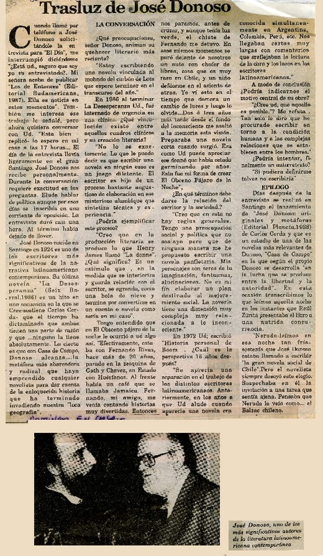 Trasluz de José Donoso [artículo] Mario Rodríguez Ordenes.