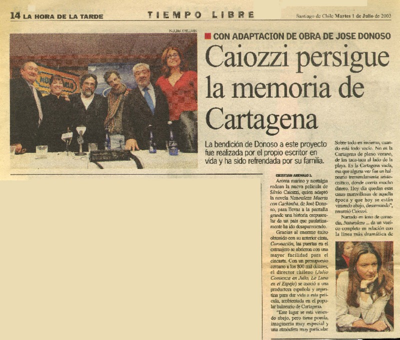 Caiozzi persigue la memoria de Cartagena [artículo] cristián Arevalo I.