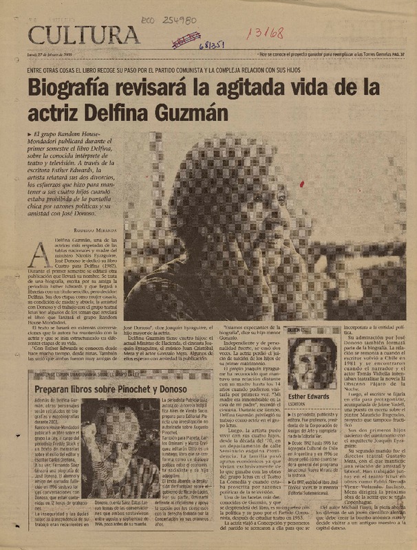 Biografía revisará la agitada vida de la actriz Delfina Guzmán [artículo] Rodrigo Miranda.