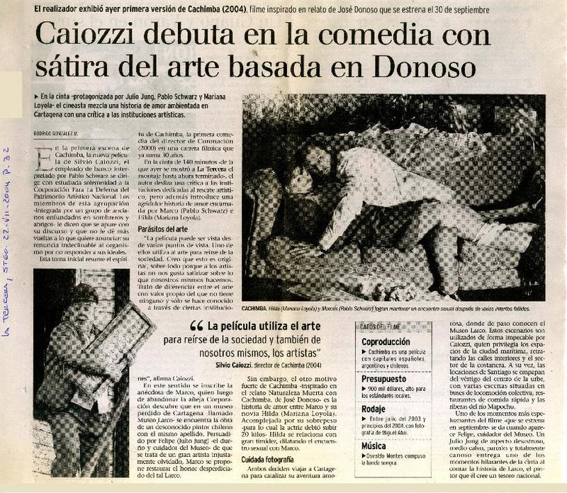 Caiozzi debuta en la comedia con sátira del arte basada en Donoso [artículo] Rodrigo González M.