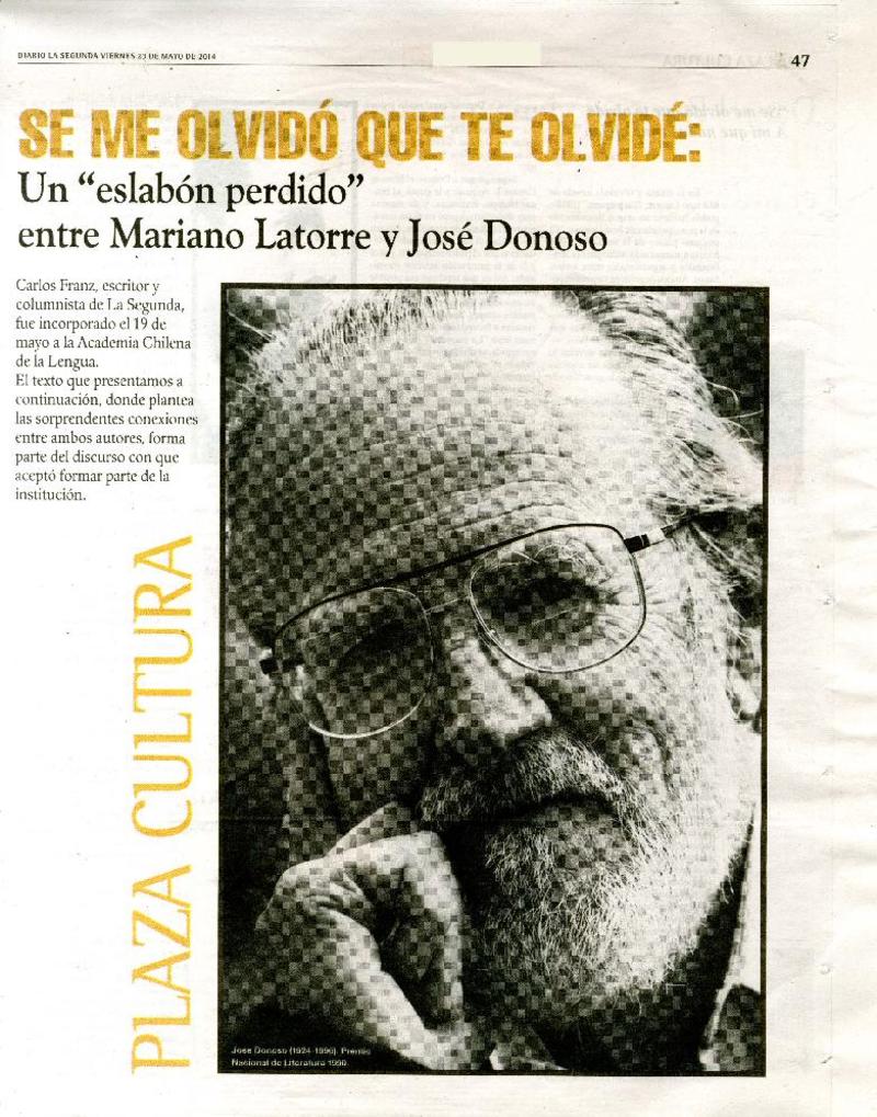 Se me olvidó que te olvidé: Un "eslabón perdido" entre Mariano Latorre y Jóse Donoso [artículo] Carlos Franz