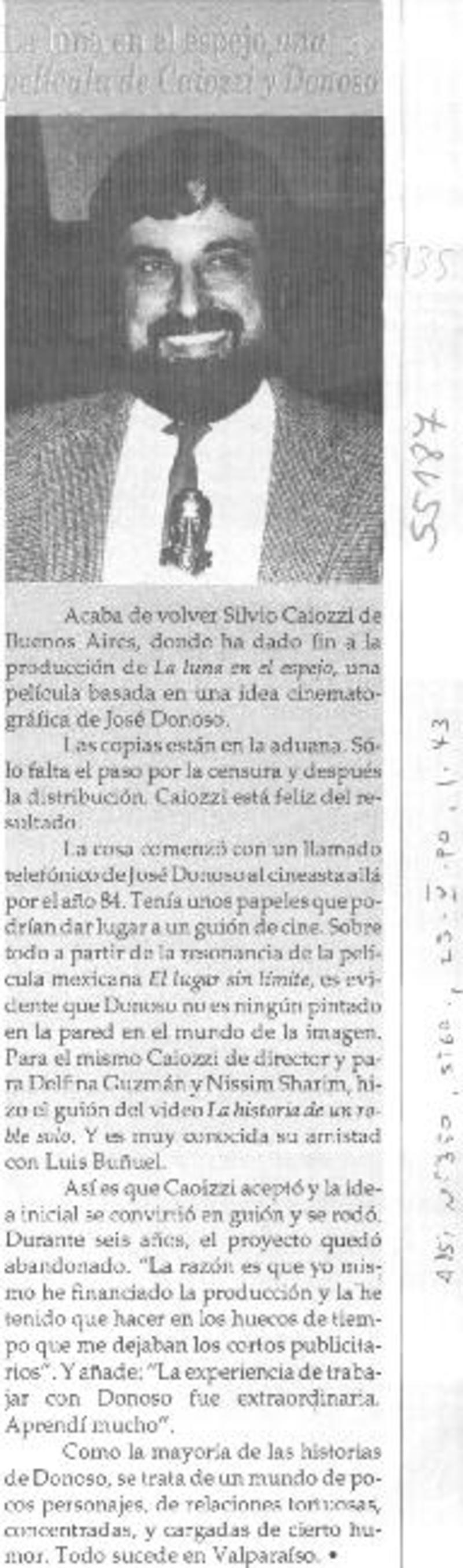 Silvio Caiozzi filmará cuento de José Donoso [artículo].
