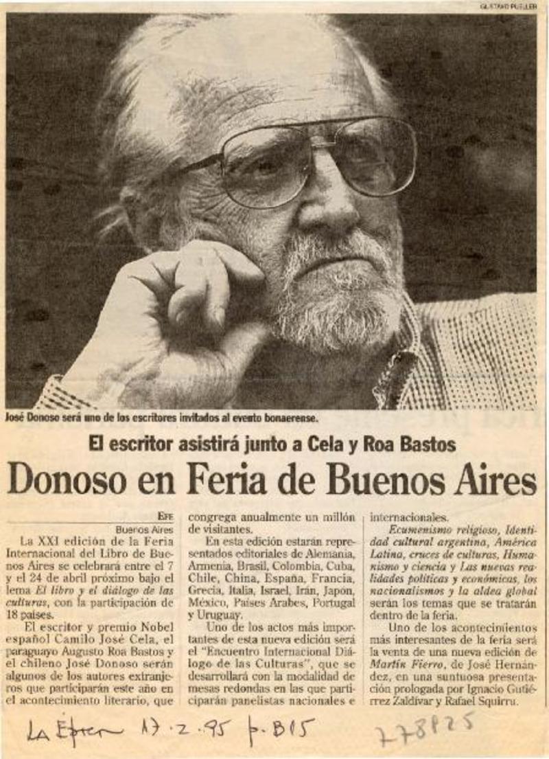 Cela, Roa Bastos y Donoso a la Feria del Libro de Buenos Aires [artículo] Oscar Martínez.