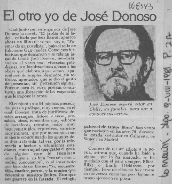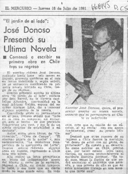 José Donoso y su novela del exilio [artículo] José Luis Rosasco.
